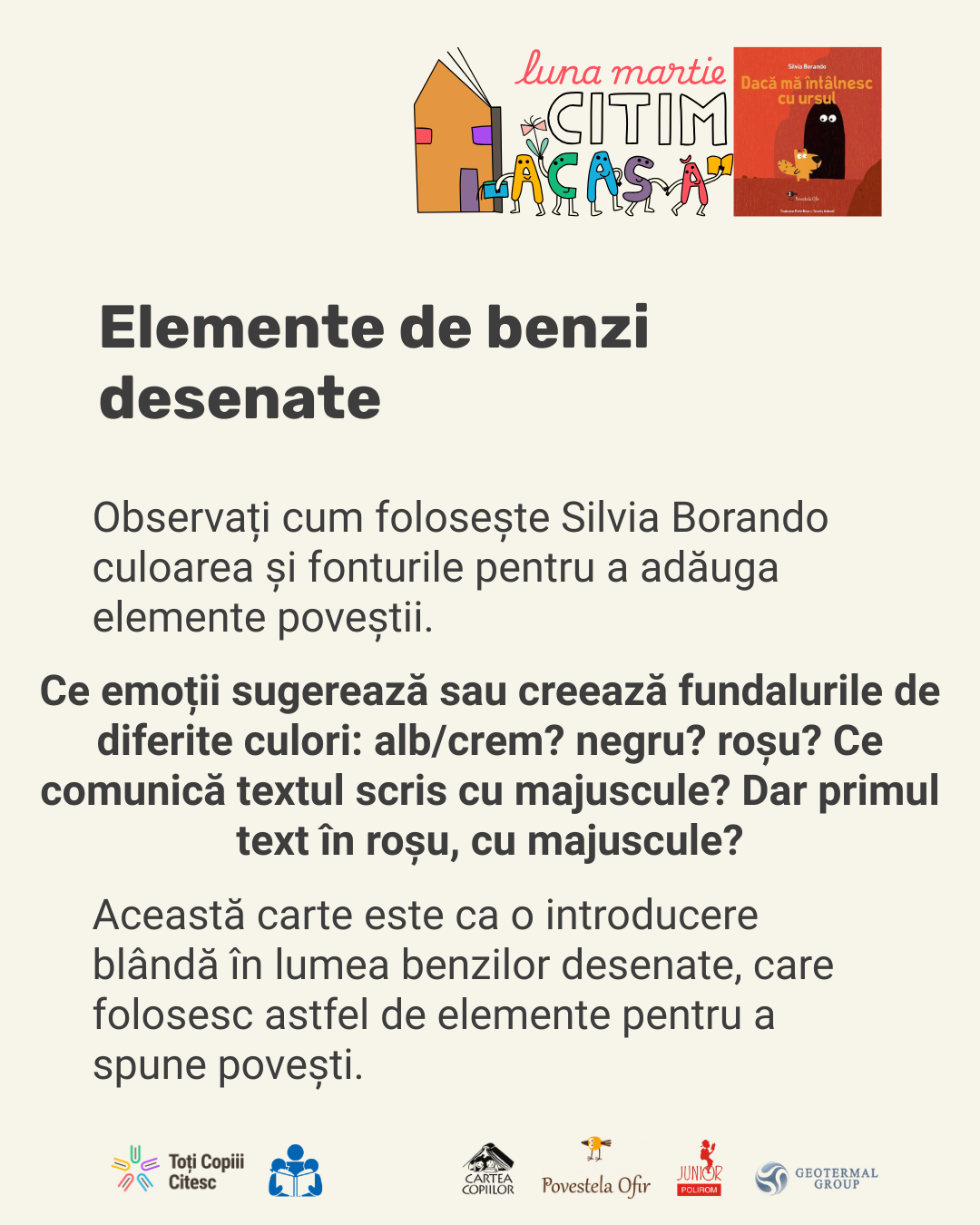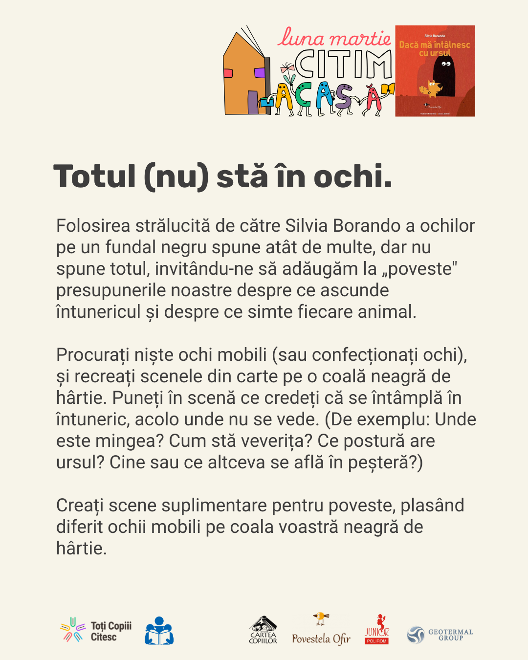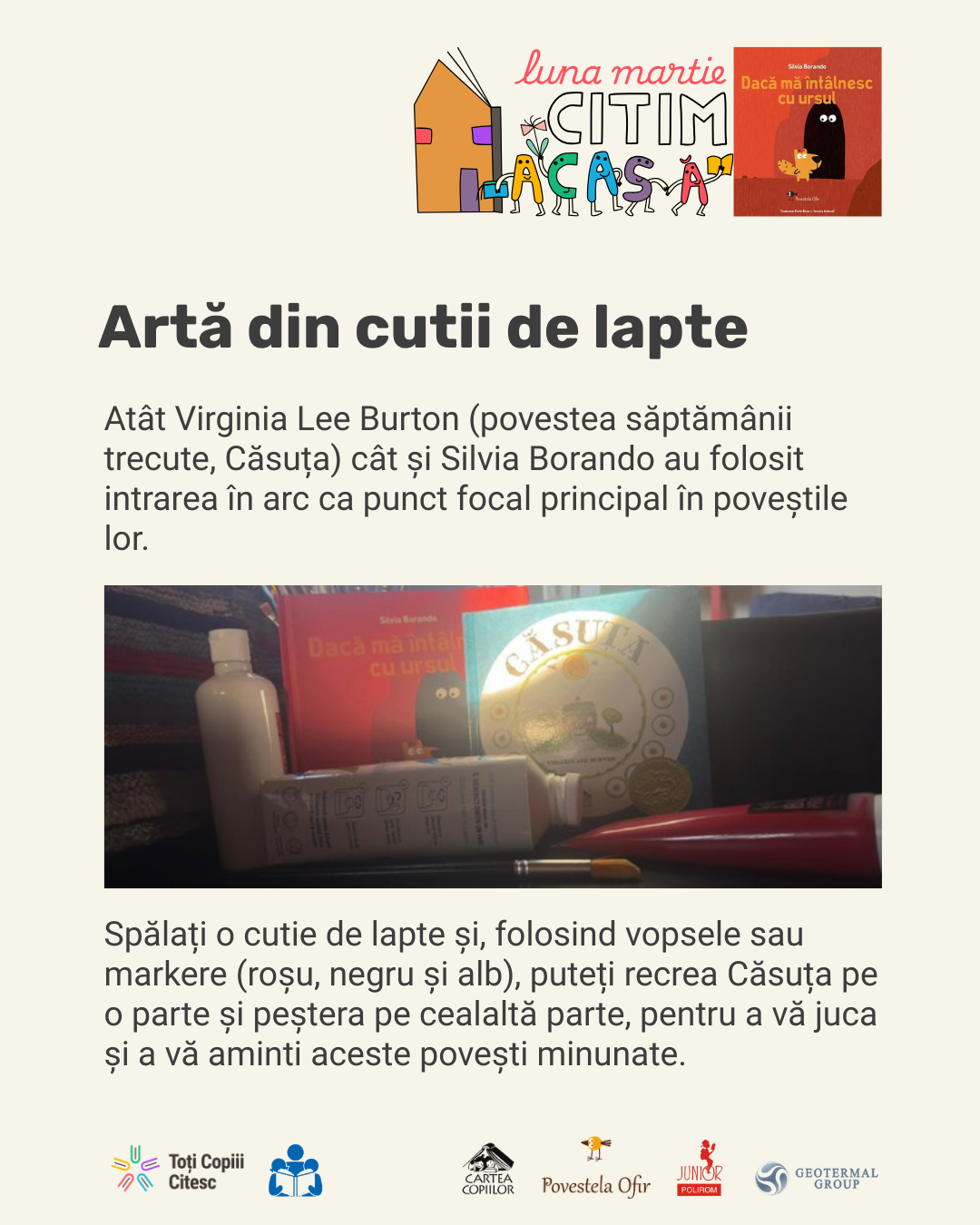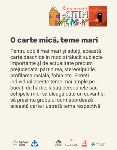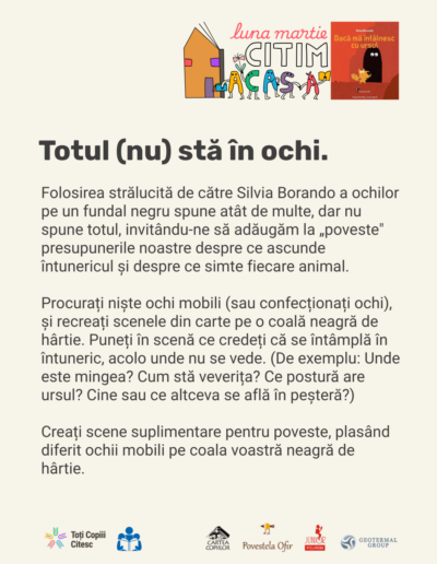 Descoperă în galeria de mai jos cele 7 idei creative pentru copii despre cum să lucrați cu această carte minunată după lectură!